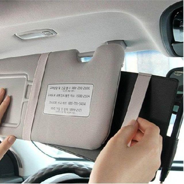 博博精品 汽車遮陽板套收納 多功能車載眼鏡夾 卡片夾 皮革收納袋 卡包 車用內飾 分類收納 安裝簡易 車內實用必備