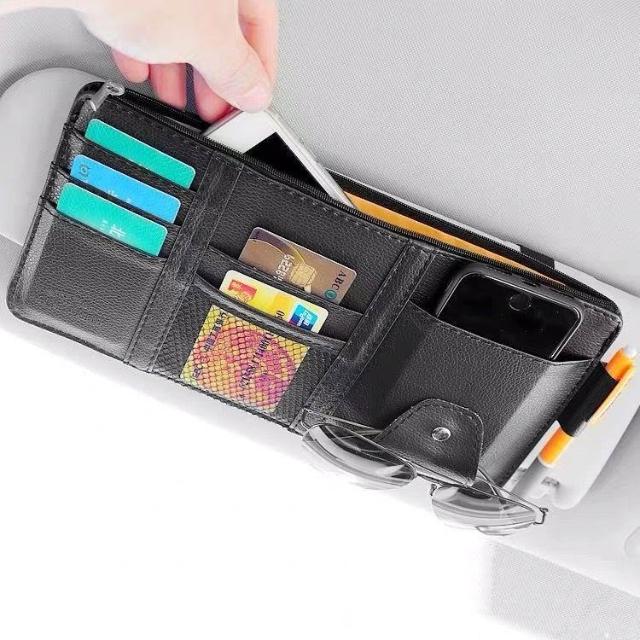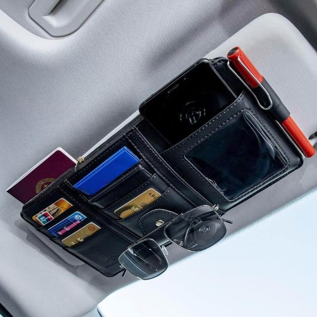 博博精品 汽車遮陽板套收納 多功能車載眼鏡夾 卡片夾 皮革收納袋 卡包 車用內飾 分類收納 安裝簡易 車內實用必備