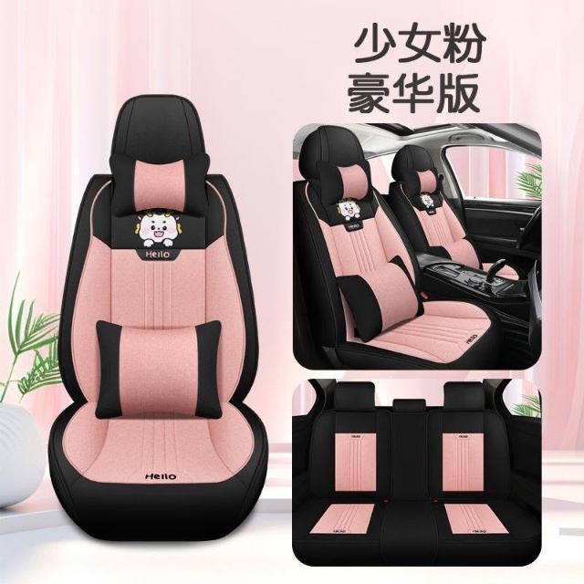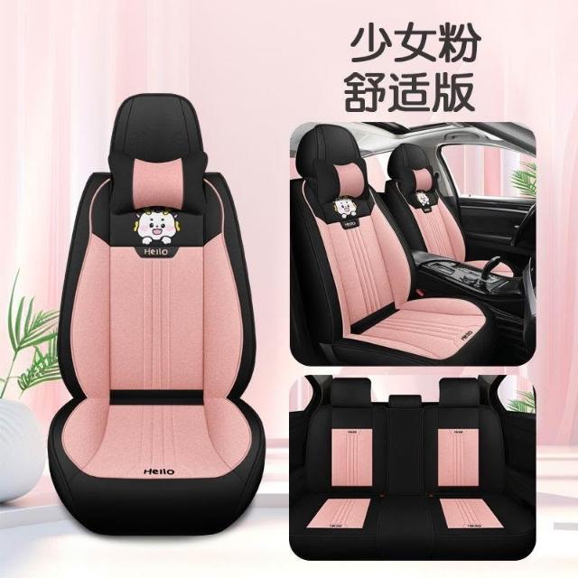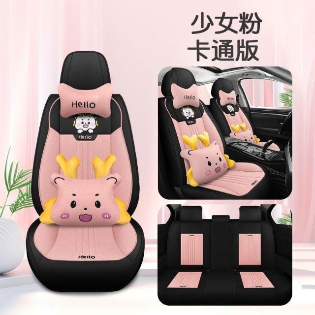 博博精品 潮款汽車坐墊 車內坐墊全套 夏季亞麻布藝 座套卡通 四季通用 座椅墊 透氣舒適防滑耐磨 安裝簡易車用必備