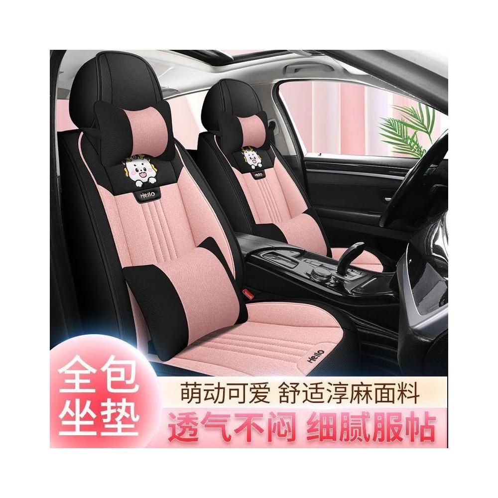 博博精品 潮款汽車坐墊 車內坐墊全套 夏季亞麻布藝 座套卡通 四季通用 座椅墊 透氣舒適防滑耐磨 安裝簡易車用必備