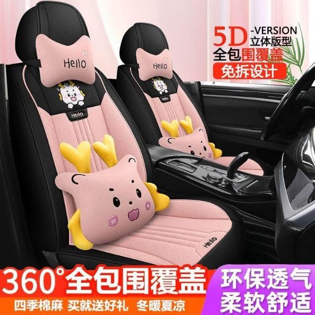 博博精品 潮款汽車坐墊 車內坐墊全套 夏季亞麻布藝 座套卡通 四季通用 座椅墊 透氣舒適防滑耐磨 安裝簡易車用必備