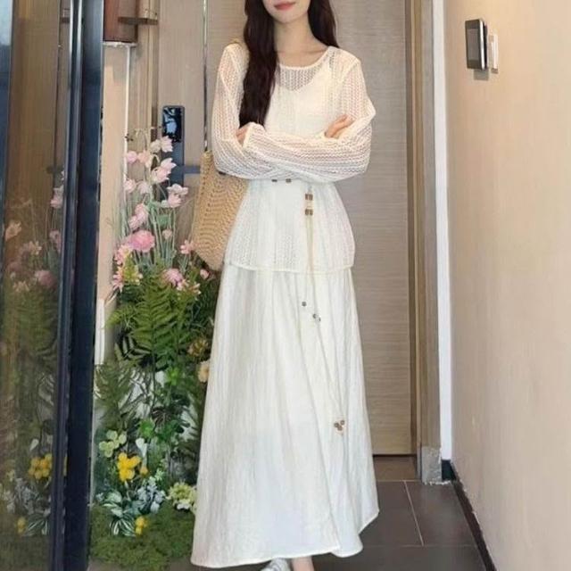 博博精品 2026 夏季新款 白色吊帶連衣裙女 溫柔風氣質長裙 海邊度假絕美穿搭 透氣輕薄 顯高顯瘦 日常通勤女裝