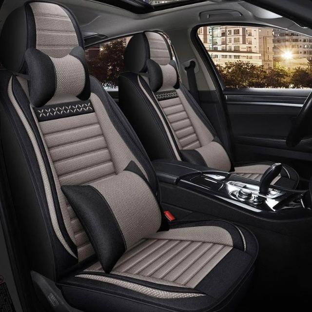 博博精品 五座全包圍汽車坐墊套 四季通用座套 亞麻座套 布藝坐墊 透氣舒適 夏季適用 耐磨耐用 安裝簡易 車用內飾