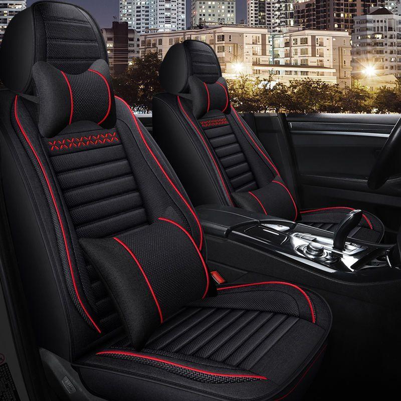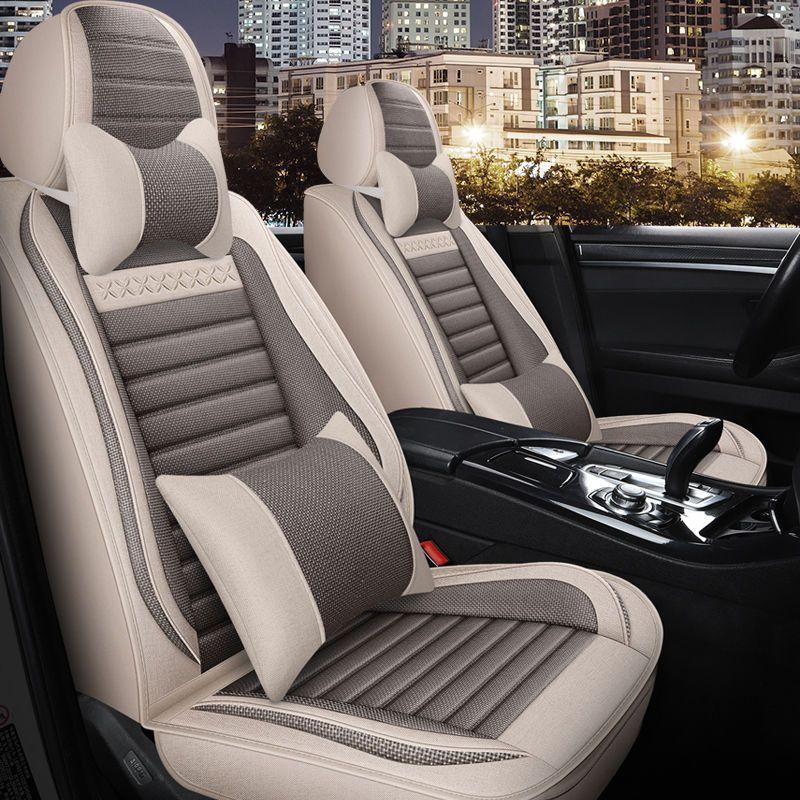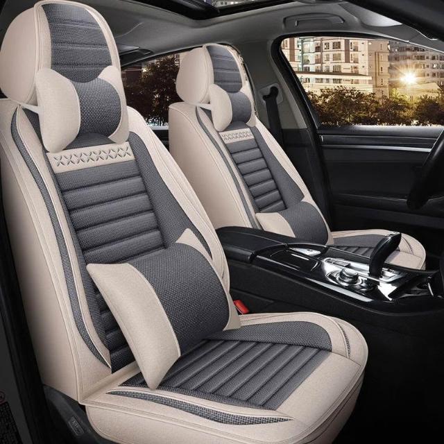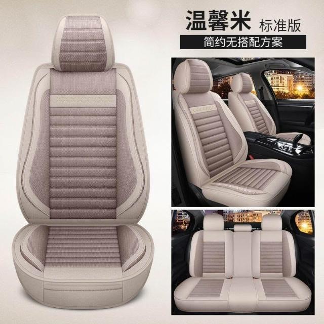 博博精品 五座全包圍汽車坐墊套 四季通用座套 亞麻座套 布藝坐墊 透氣舒適 夏季適用 耐磨耐用 安裝簡易 車用內飾