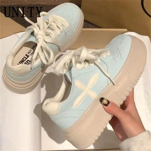 博博精品 2026春季新款 薄荷曼波色系厚底板鞋 女款透氣薄款小白鞋 增高休閒運動鞋 百搭顯腿長 日常通勤逛街必備