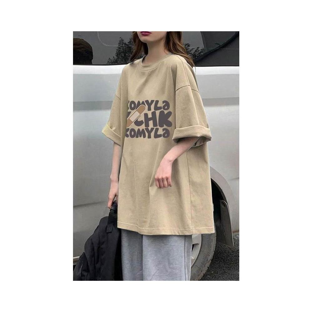 博博精品 港风 vibe 美拉德色系情侣短袖 T恤 簡約字母印花 夏季百搭 ins 潮牌上衣 男女同款圓領纯棉透气
