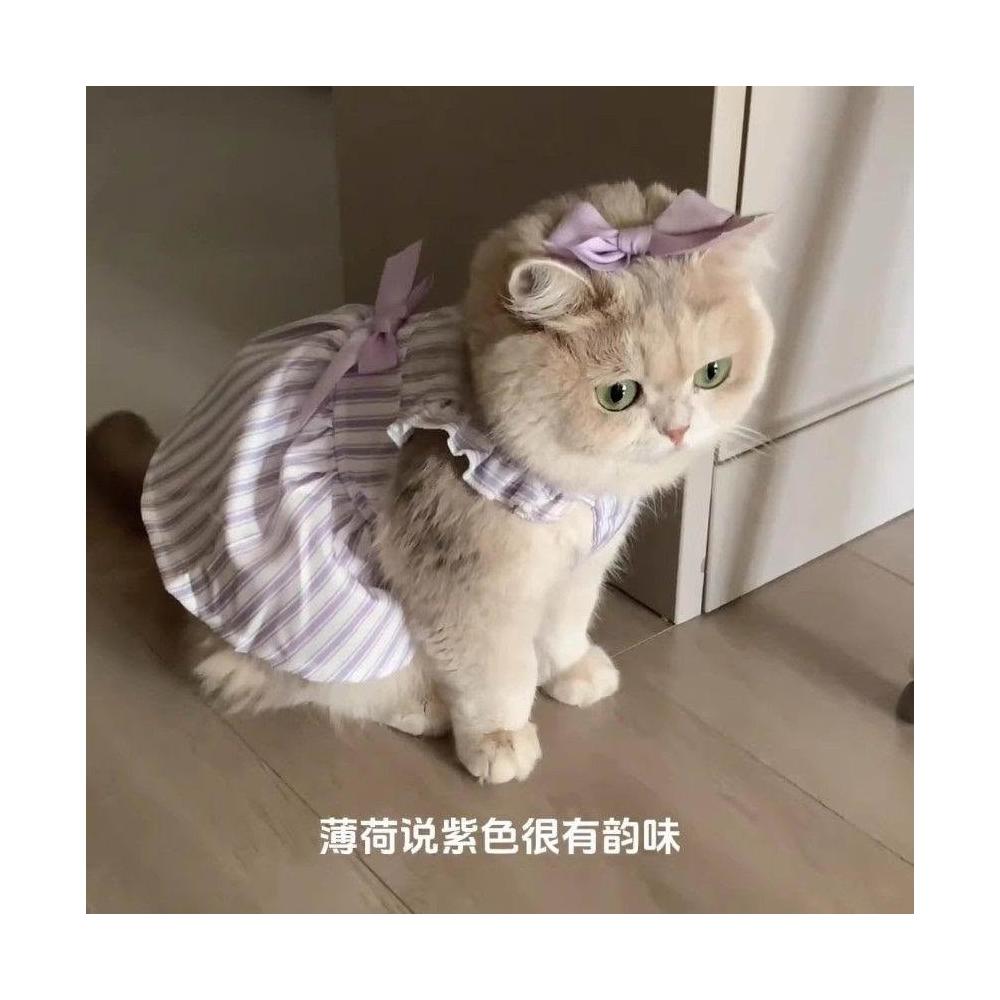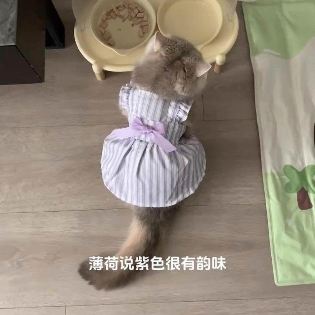 博博精品 貓咪衣服 夏天公主風 防掉毛薄款 幼貓布偶藍白金漸層適用 紫色可愛裙子 舒適透氣 寵物連衣裙
