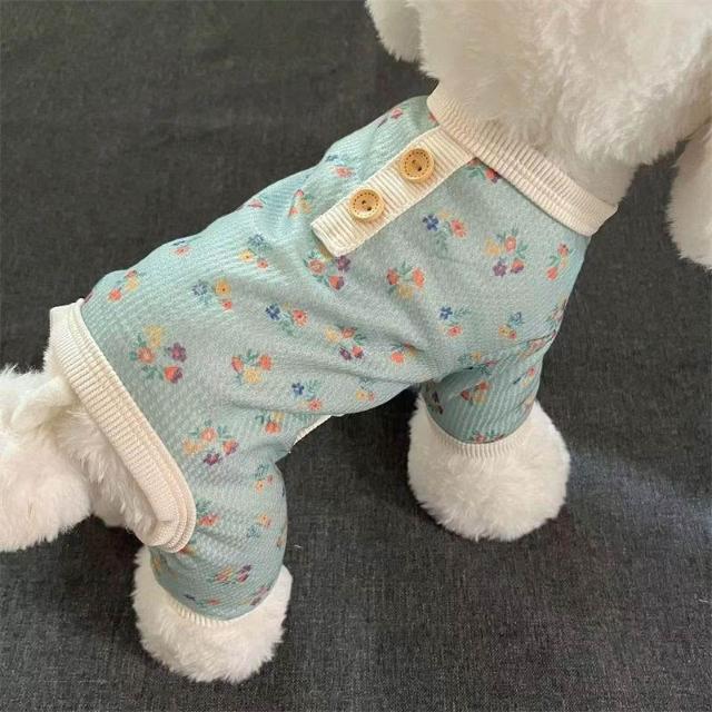 博博精品 寵物碎花四腳衣 泰迪比熊博美小型犬專用 春夏秋四季適穿 舒適家居服 柔軟打底 睡覺外出兩用狗狗衣服
