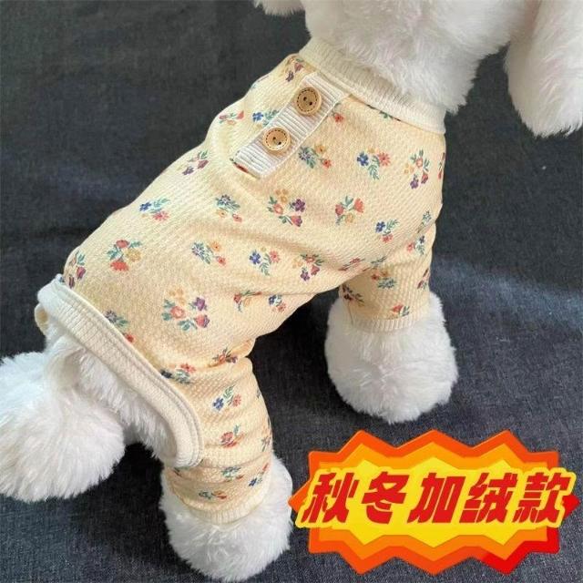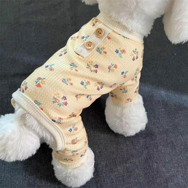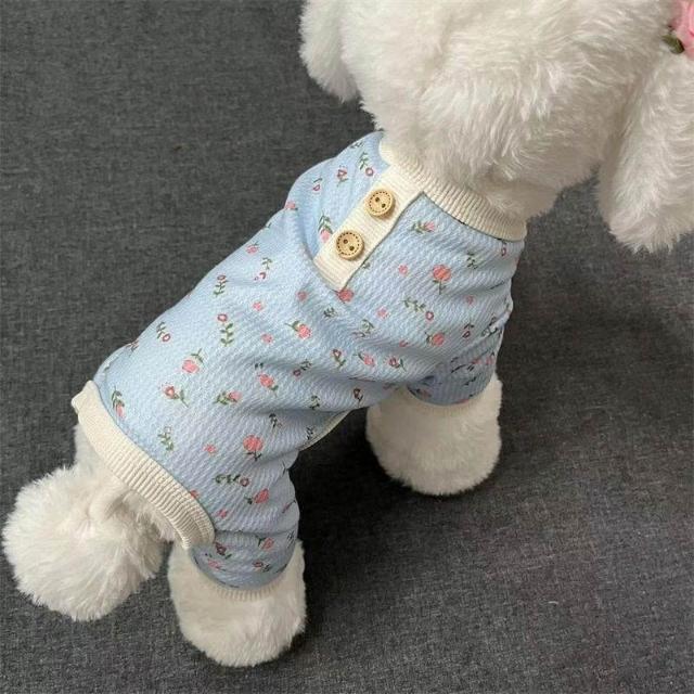 博博精品 寵物碎花四腳衣 泰迪比熊博美小型犬專用 春夏秋四季適穿 舒適家居服 柔軟打底 睡覺外出兩用狗狗衣服