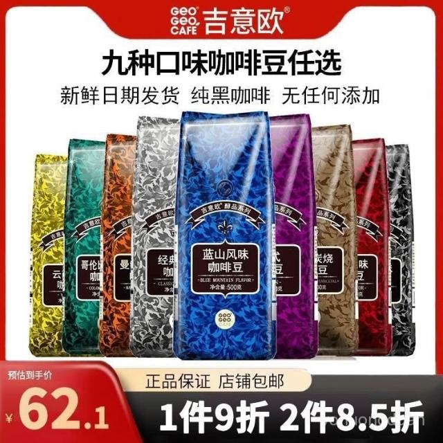 吉意歐藍山風味黑咖啡豆阿拉比卡中深新鮮烘焙手磨意式美式500克