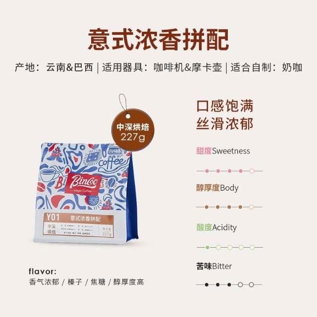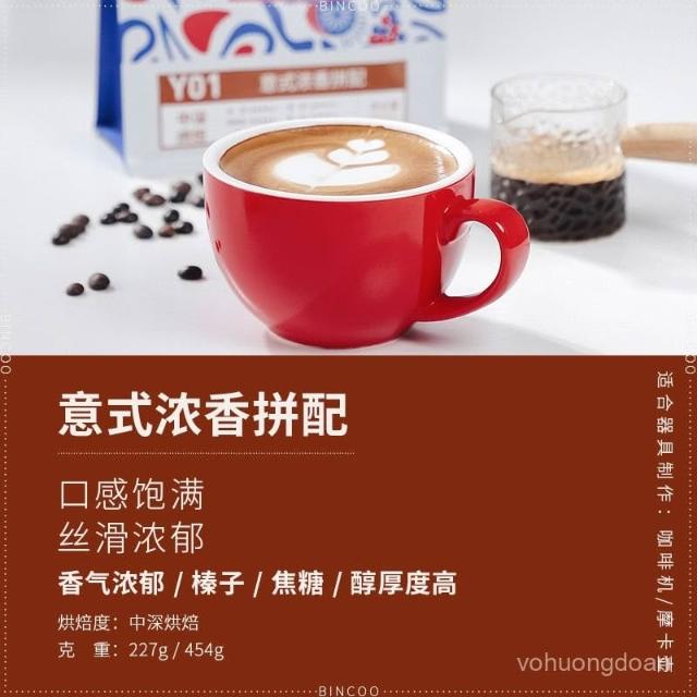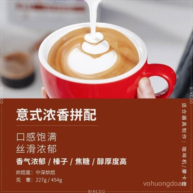 Bincoo意式濃香拚配生椰拿鐵黑咖啡中深烘咖啡豆醇香油脂焦糖堅果