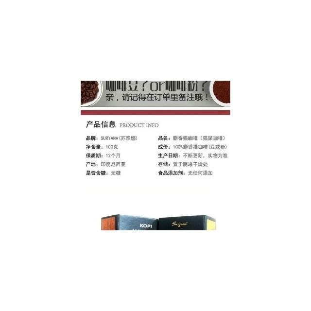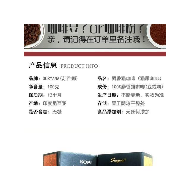 麝香貓屎咖啡豆粉巴釐印尼原裝進口曼特寧kopi luwak盒裝現磨100g