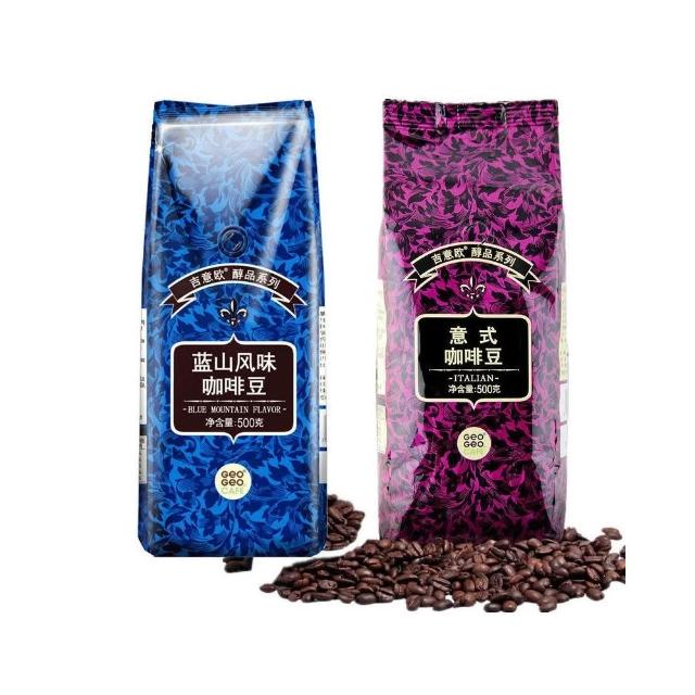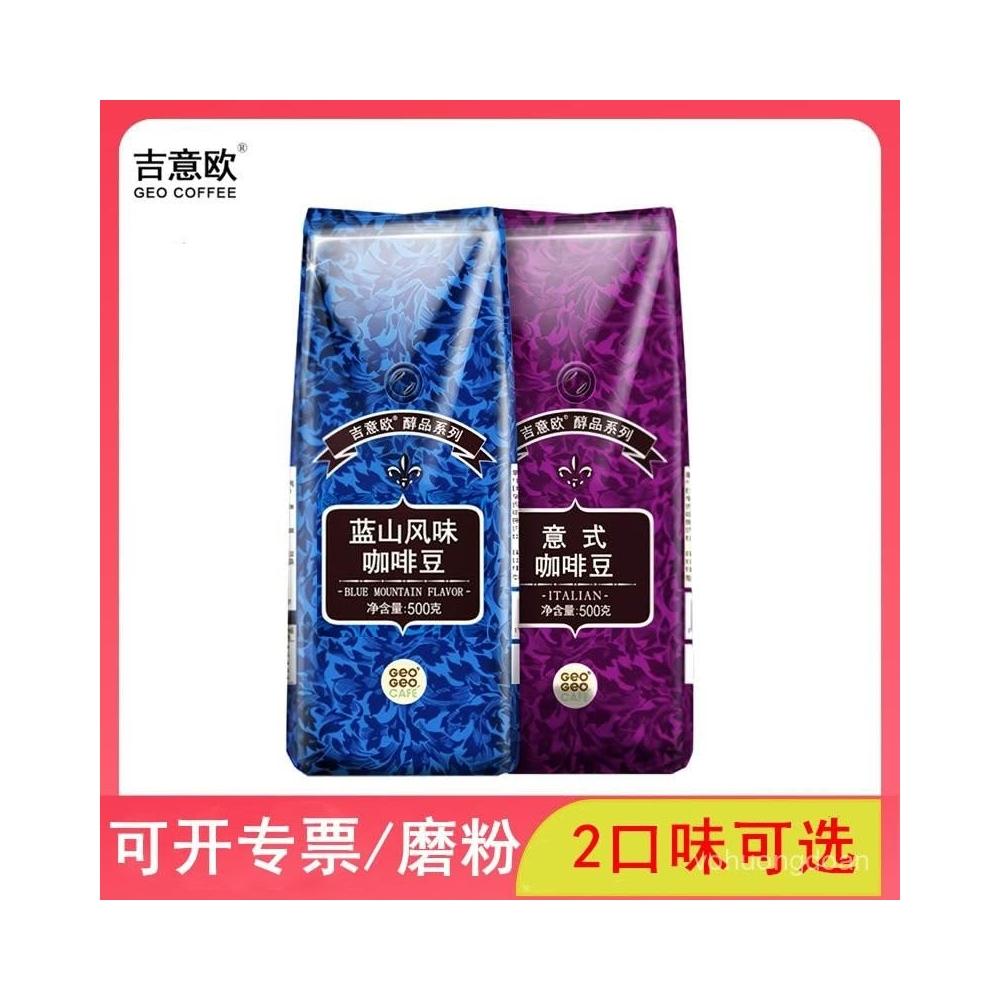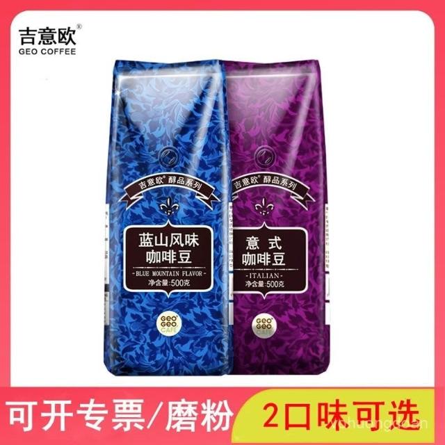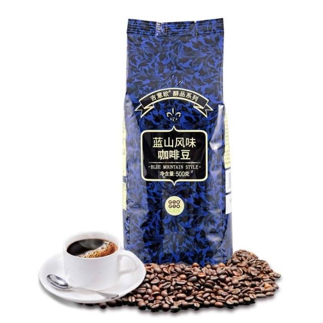吉意歐藍山風味意式醇香濃縮特濃阿拉比卡純黑咖啡豆500g袋裝中度