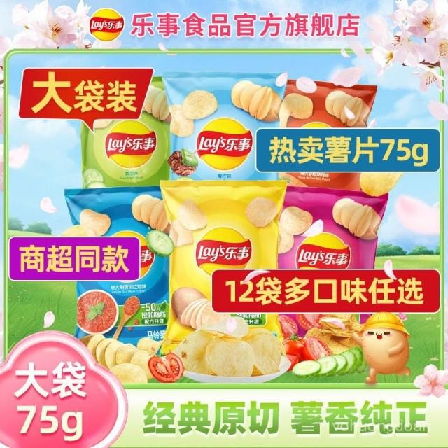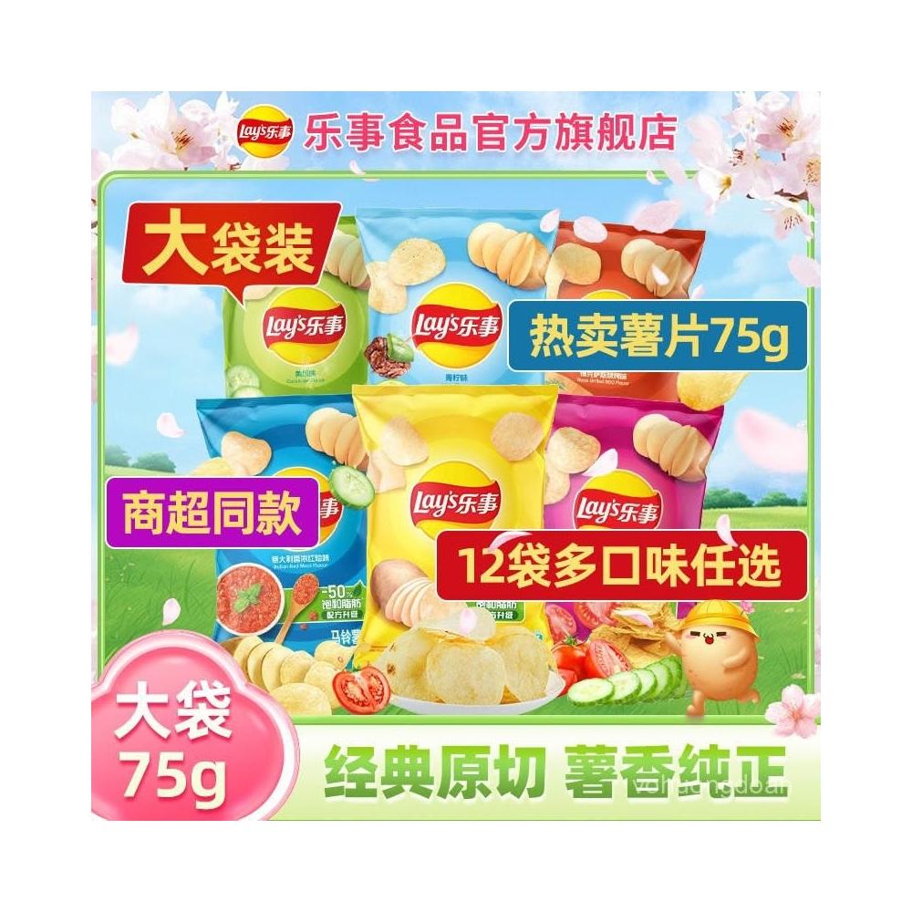 樂事薯片75g經典原切大袋熱賣組閤超市衕款解饞休閒小零食大禮包