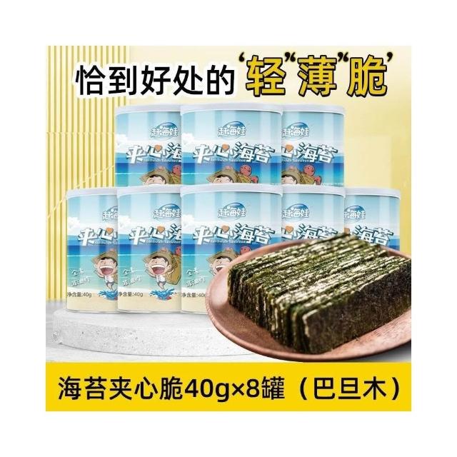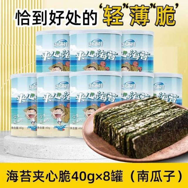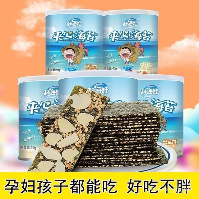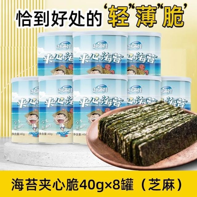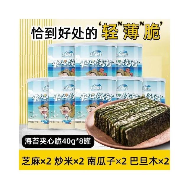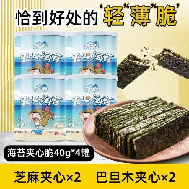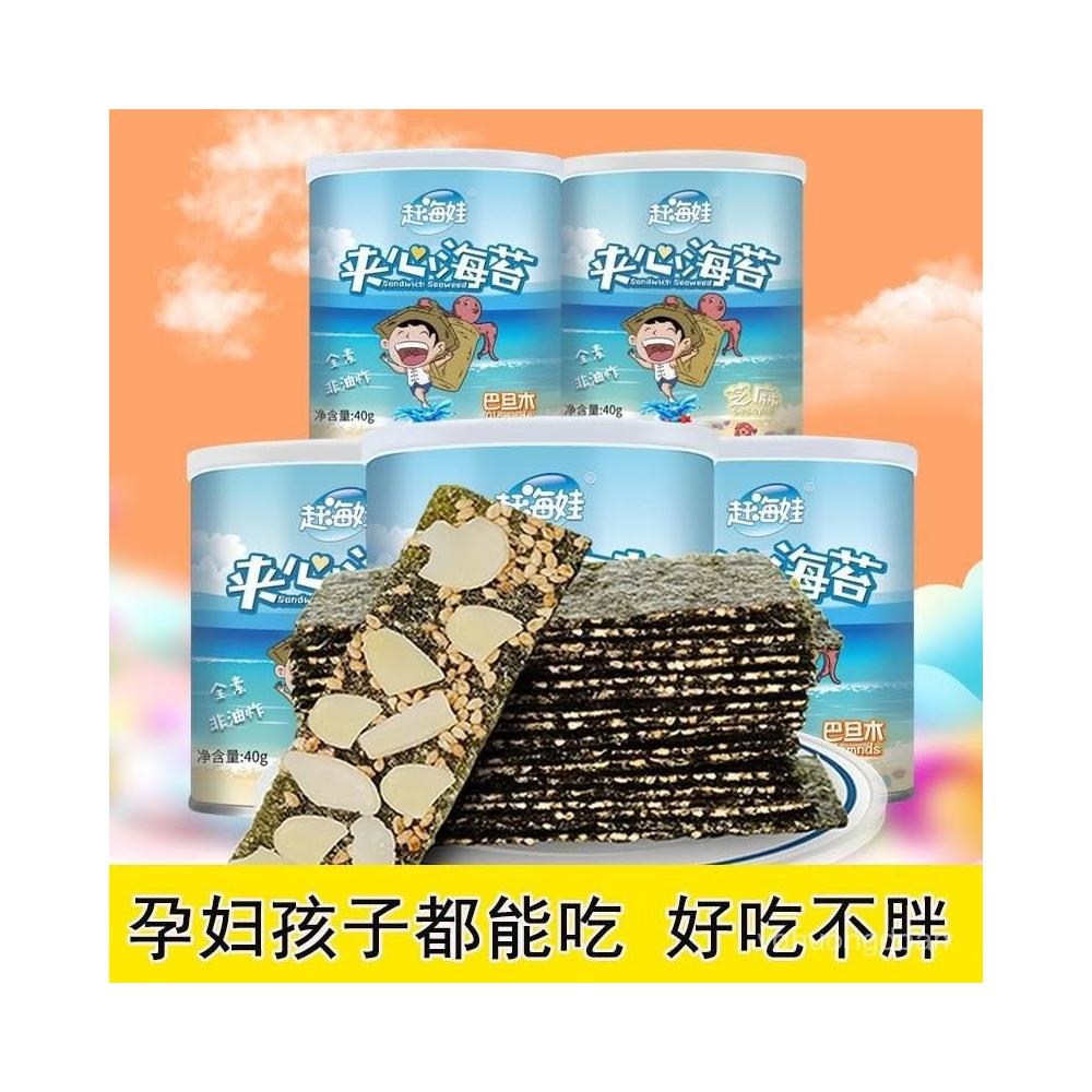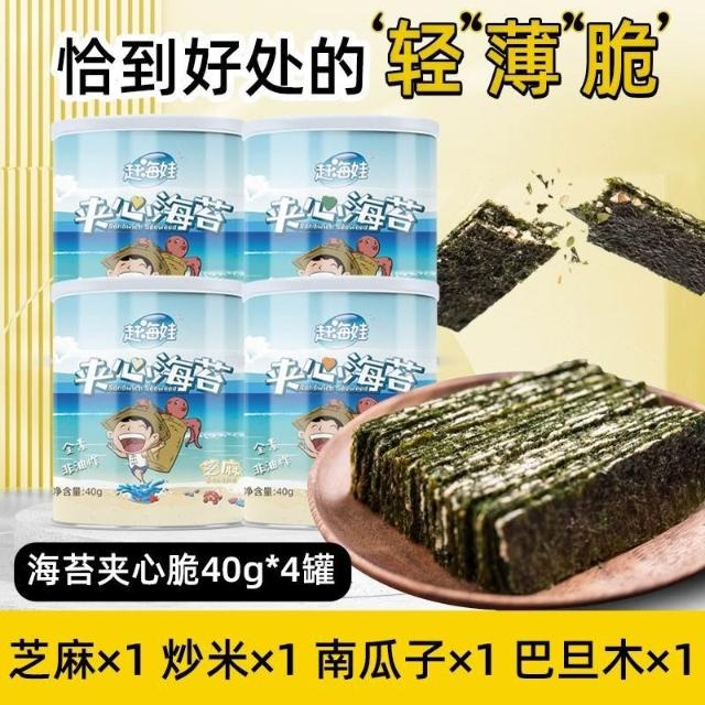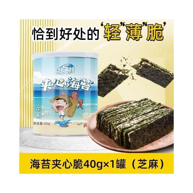 趕海娃夾心海苔脆片原味40g罐裝芝麻海苔兒童0添加劑健康寶寶零食