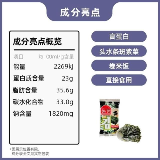 農亨巖燒海苔片兒童開胃拌飯休閒紫菜零食小喫獨立包裝特價直髮