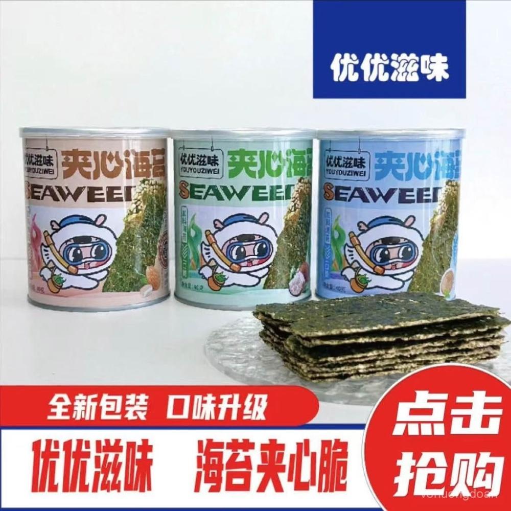 優優滋味海苔夾心脆新包裝 三種口味 健康休閒食品 卽食罐裝 網紅