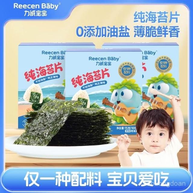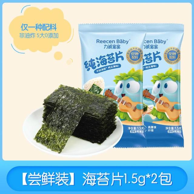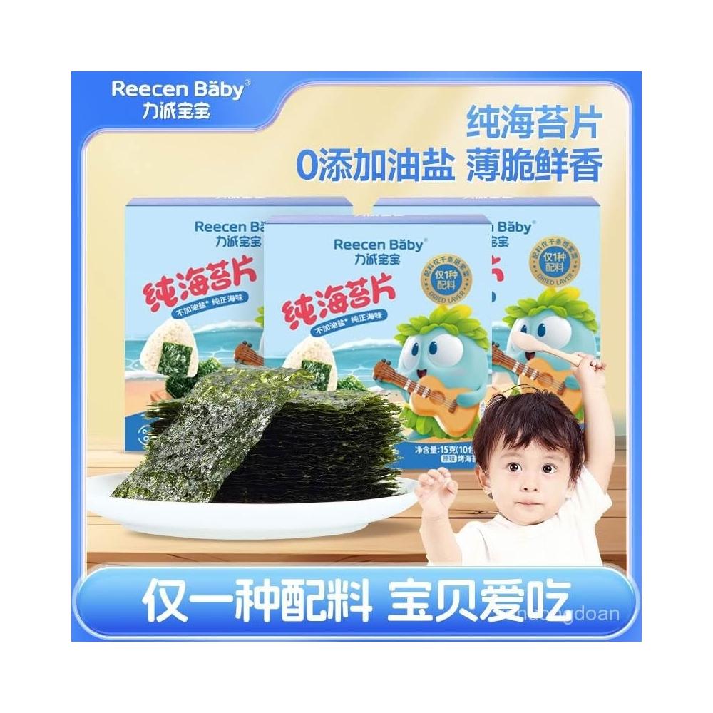 力誠寶寶純海苔片兒童卽食健康零食0添加油鹽非油炸海苔夾心脆