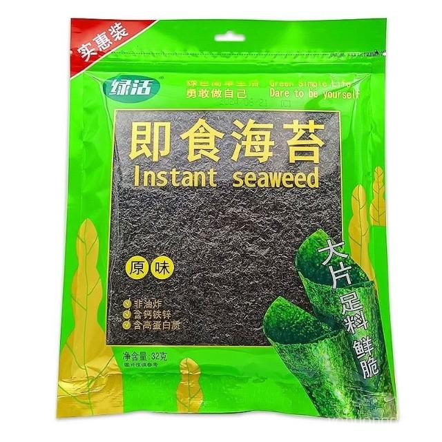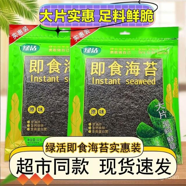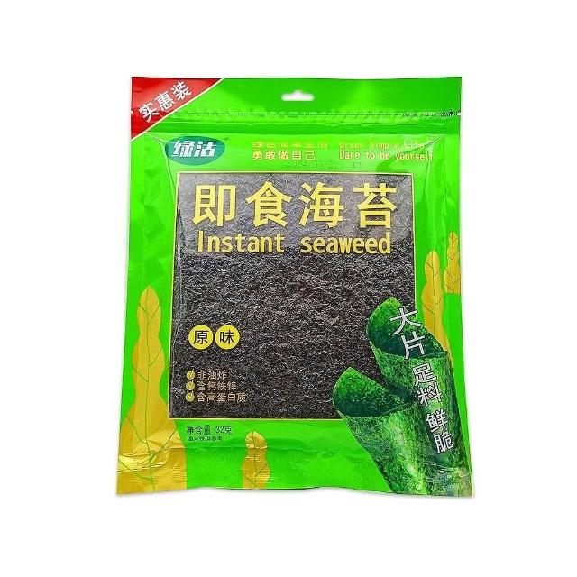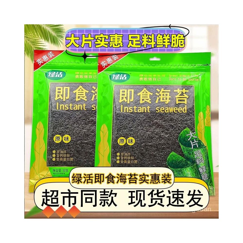 綠活原味卽食海苔實惠裝32g休閒兒童零食大片裝紫菜袋裝卽食香脆