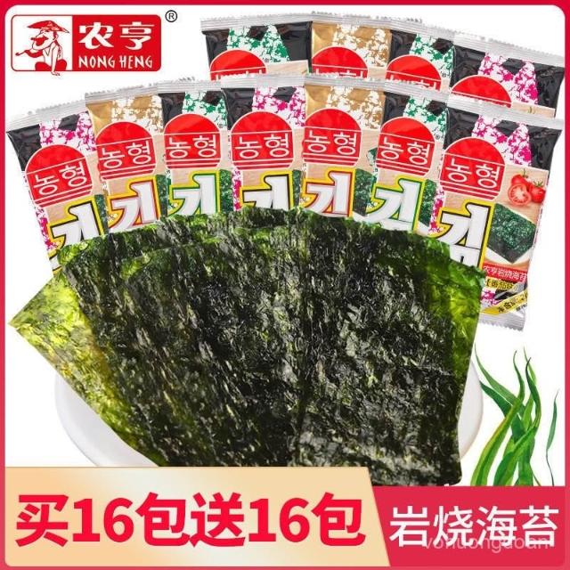 農亨巖燒海苔片原味兒童海味拌飯休閒卽食零食烤紫菜片批髮整箱