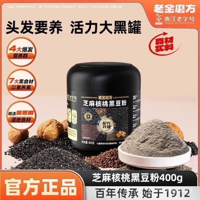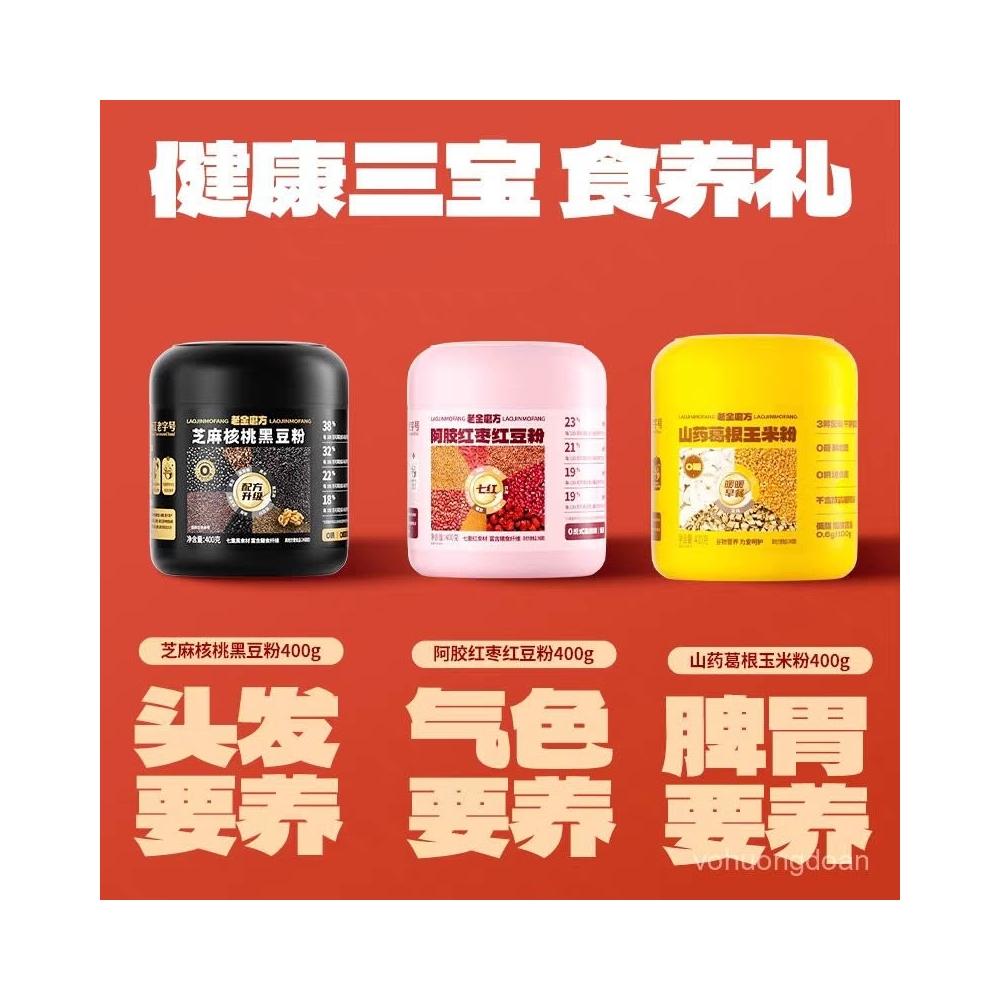 老金磨方黑芝麻糊核桃黑豆粉紅豆粉400g罐裝葛根粉飽腹代餐早餐粉