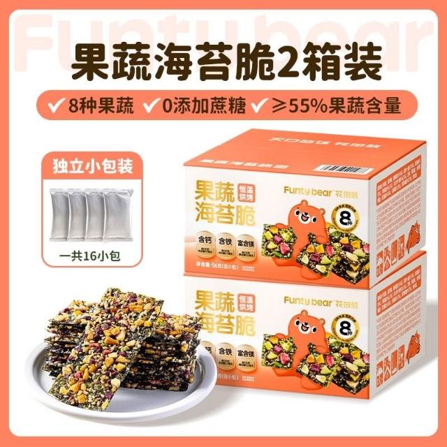 花田熊果蔬海苔脆兒童營養卽食海苔片56g果幹蔬菜紫菜脆零食