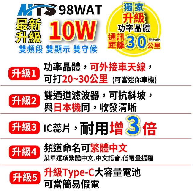 MTSMTS 98WAT 升級新樣式天線 無線電對講機 雙頻 對講機 10W 大功率 中文顯示 語音