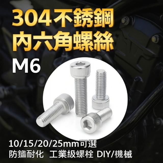304不鏽鋼內六角螺絲M6|多尺寸10/15/20/25mm|防鏽耐蝕工業級螺栓|DI