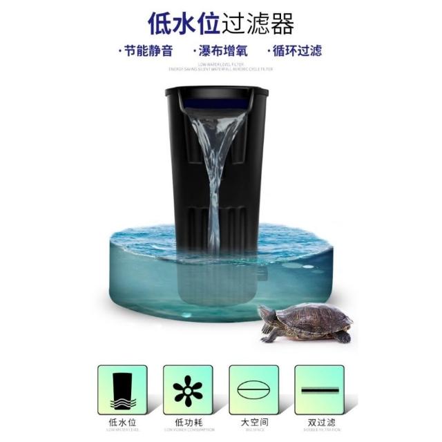 烏龜缸過濾器|低水位瀑布式內濾|靜音節能馬達|淺缸適用魚龜共用|高效循環淨水裝置