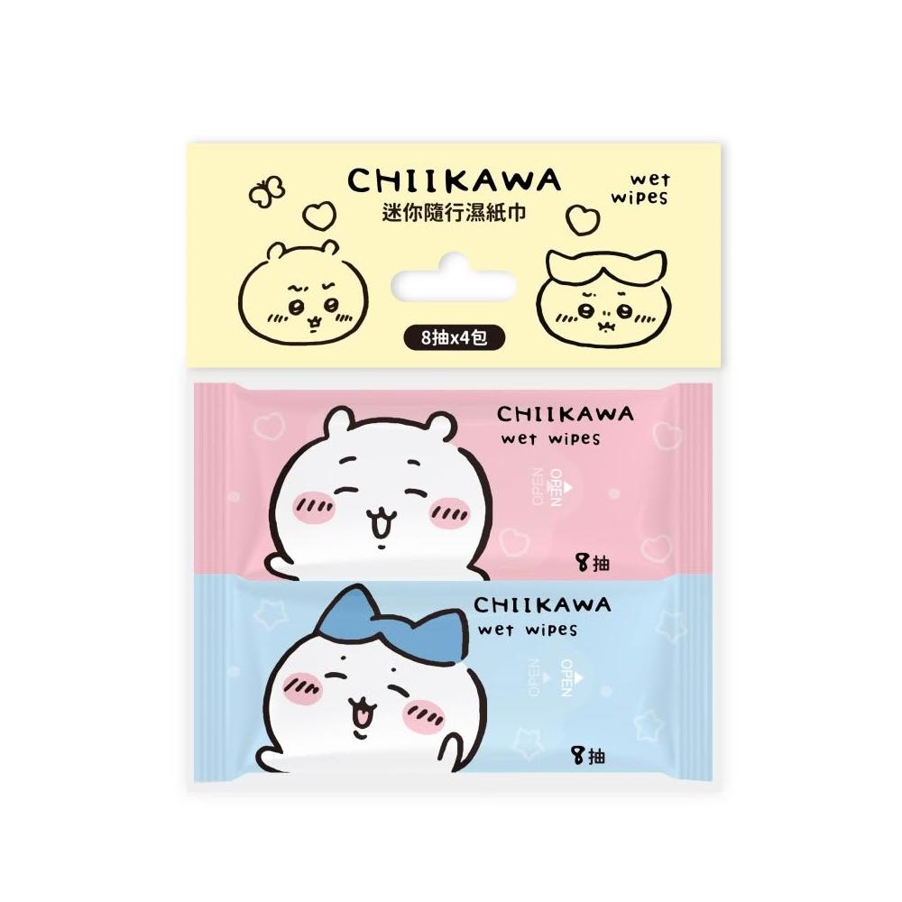 吉伊卡哇 迷你隨行濕紙巾(好心情款)8抽4包/袋 ★12袋販售
