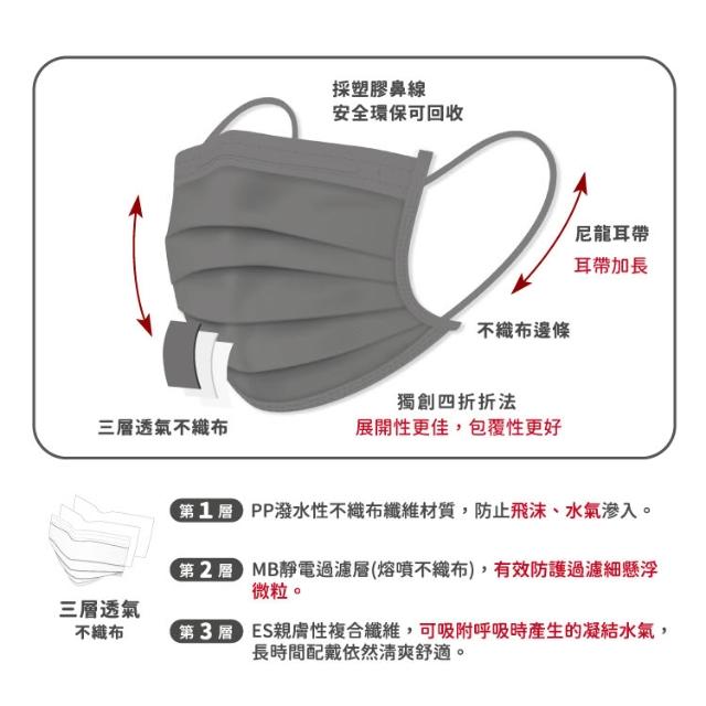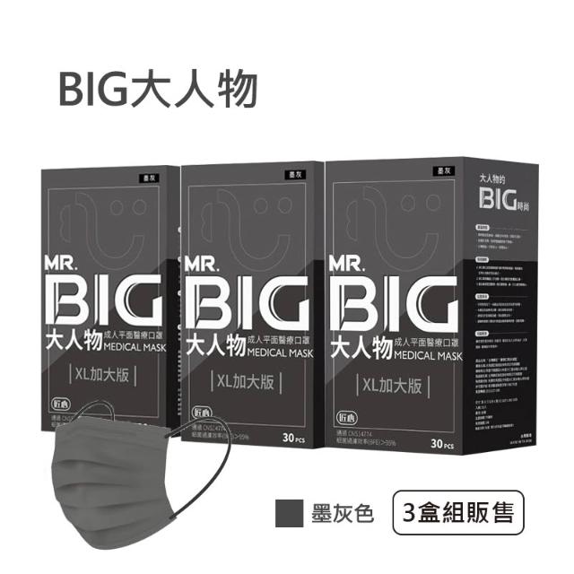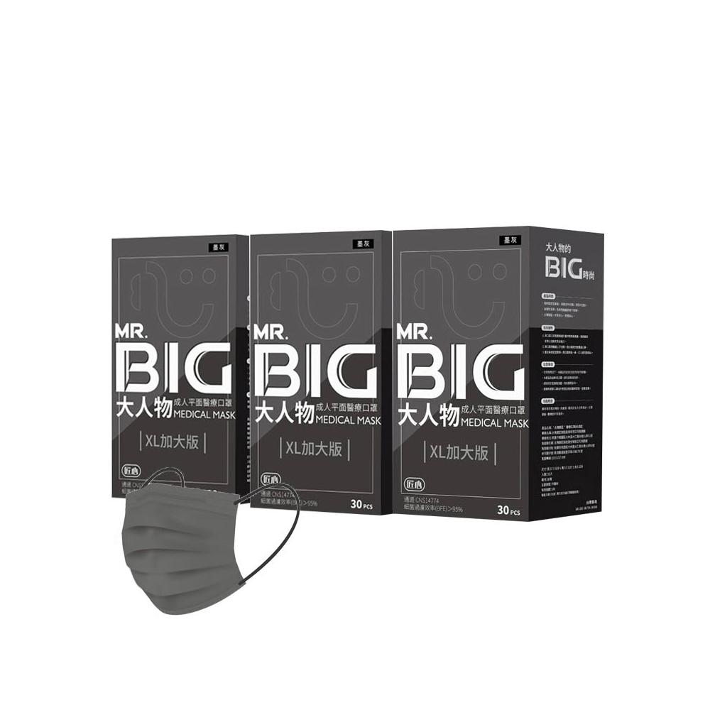 匠心MR.BIG大人物 成人平面醫療口罩 墨灰 30入/盒 ★3盒組販售