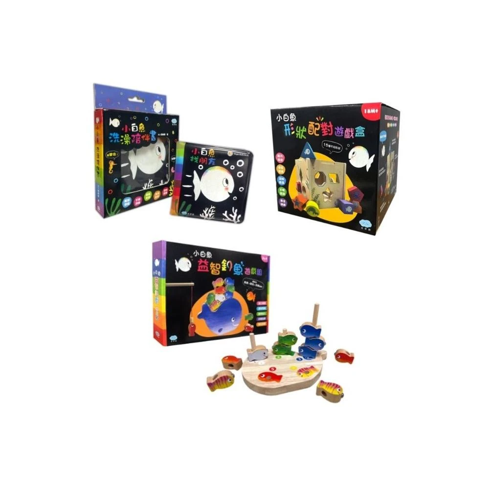 雙美生活文創小白魚系列益智遊戲/陪伴書 釣魚遊戲組 / 形狀配對遊戲盒 / 洗澡陪伴書 雙美 附發票