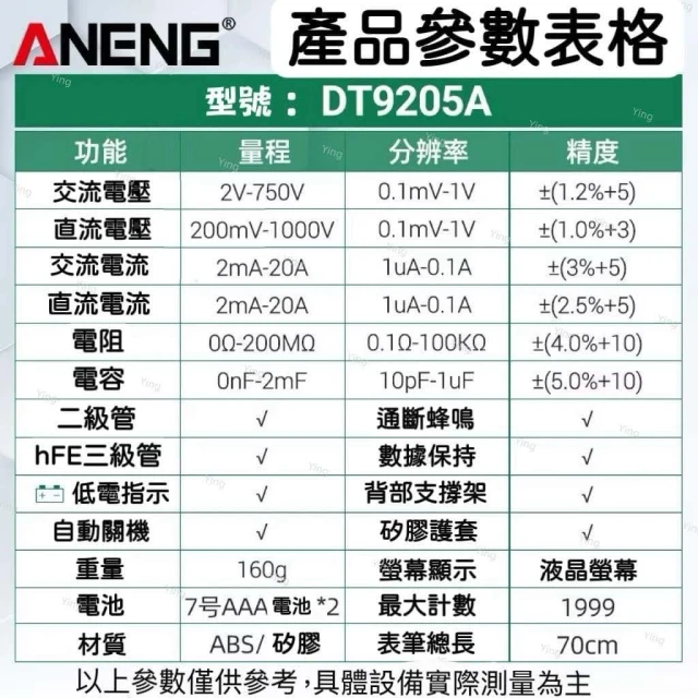 測量精準 滿足各種需求 三用電錶 電容錶 數位電錶 電錶 電壓 電流 電阻 電容 電壓表 萬用電表