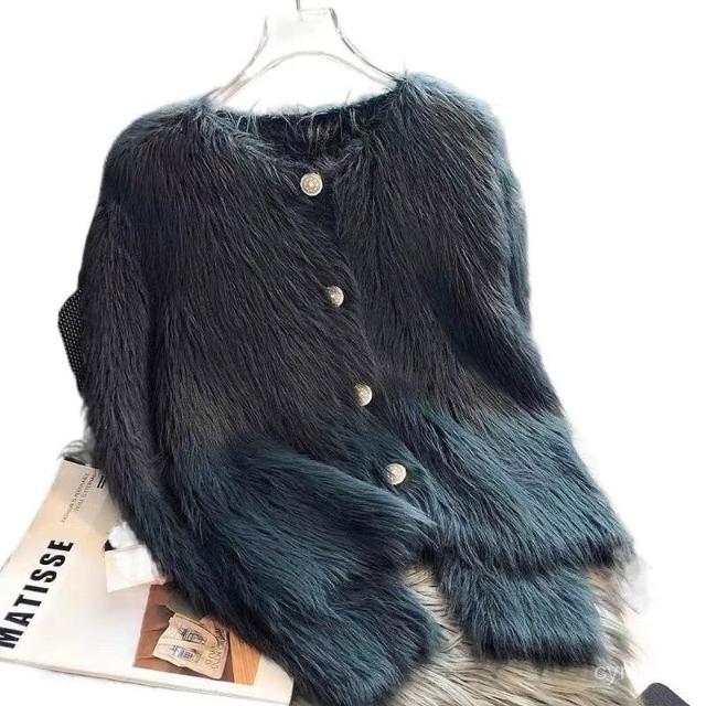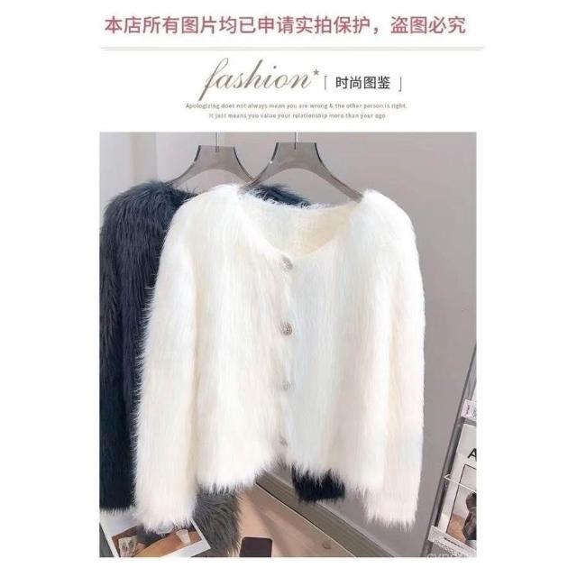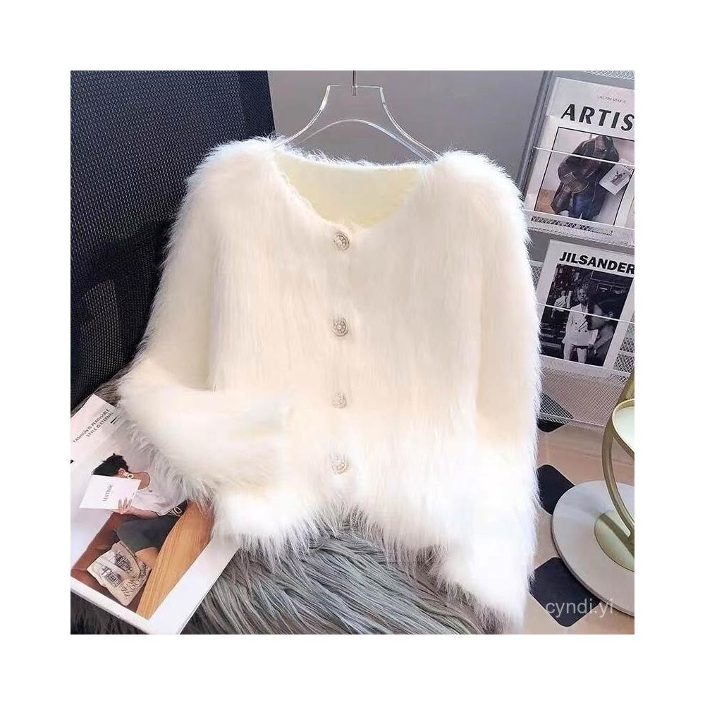 冬季水貂毛外套女 仿水貂絨針織開衫毛衣外套女秋冬裝加厚25新款短版歐貨軟糯 皮草外套 毛絨外套1011