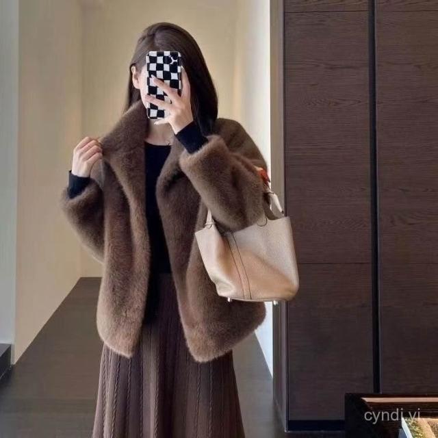 冬季水貂毛外套女 皮草立領貂絨保暖毛絨毛毛外套女年輕款短版25冬季貂絨大衣 皮草外套 毛絨外套1011