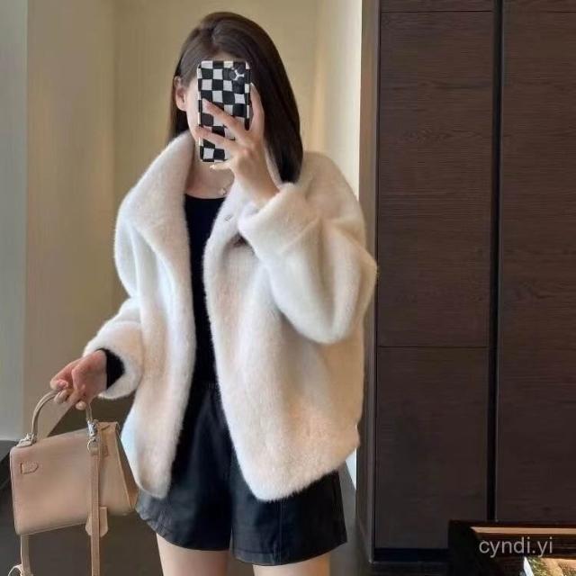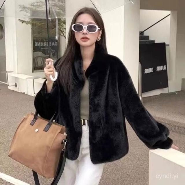 冬季水貂毛外套女 皮草立領貂絨保暖毛絨毛毛外套女年輕款短版25冬季貂絨大衣 皮草外套 毛絨外套1011