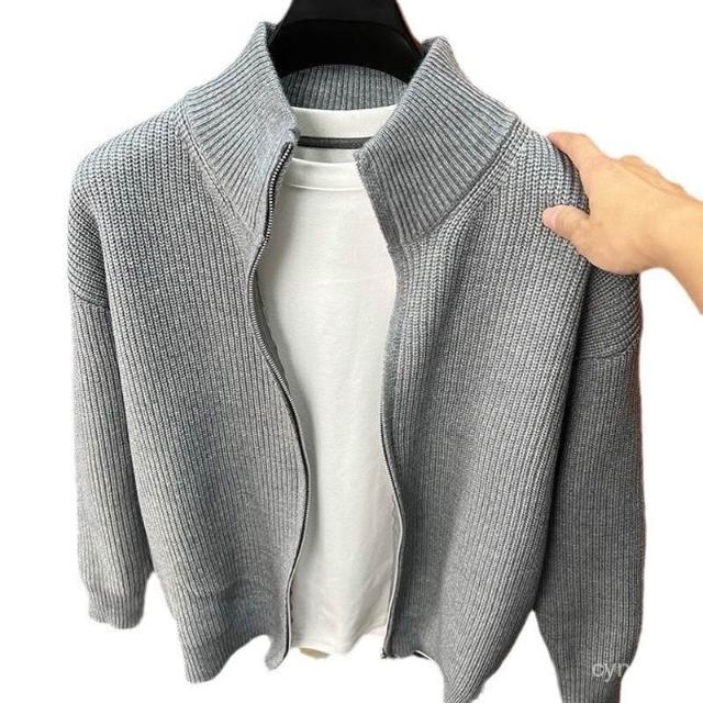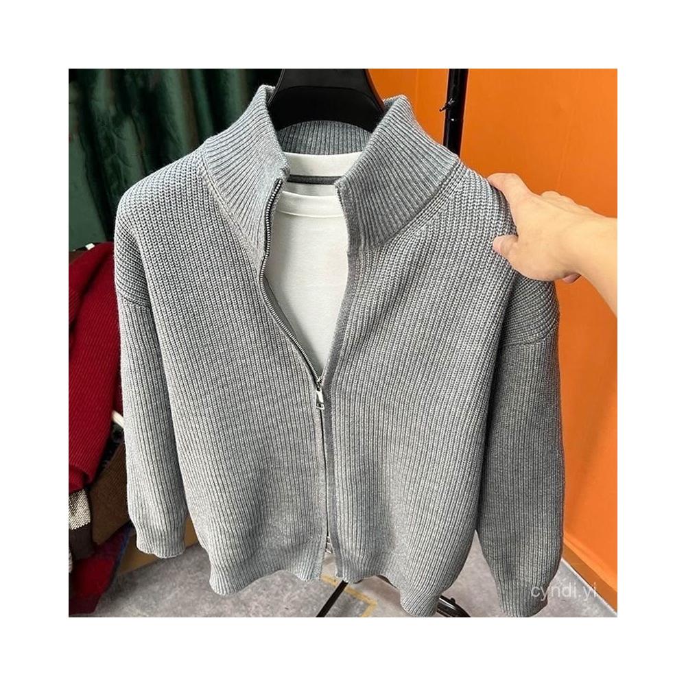 冬季針織外套 開衫素色拉鏈毛衣男百搭針織衫秋冬季爆款修身外套男立領半高外搭 保暖 外套10201021 06TK