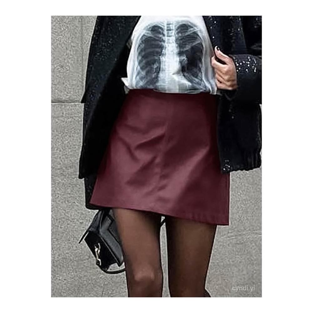 冬季皮裙歐美複古經典酒紅色加絨啞光皮革個性高腰小衆半身裙秋冬時尚短裙 加絨 保暖1027 9HVI
