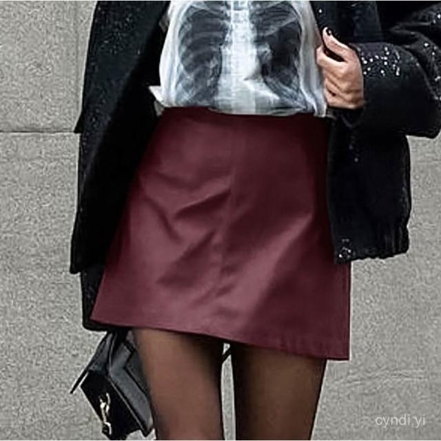 冬季皮裙歐美複古經典酒紅色加絨啞光皮革個性高腰小衆半身裙秋冬時尚短裙 加絨 保暖1027 9HVI