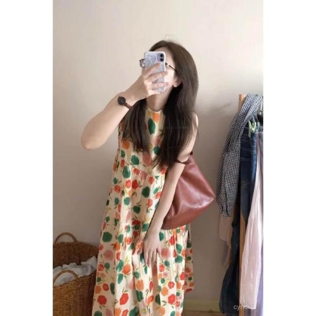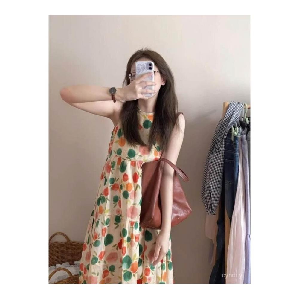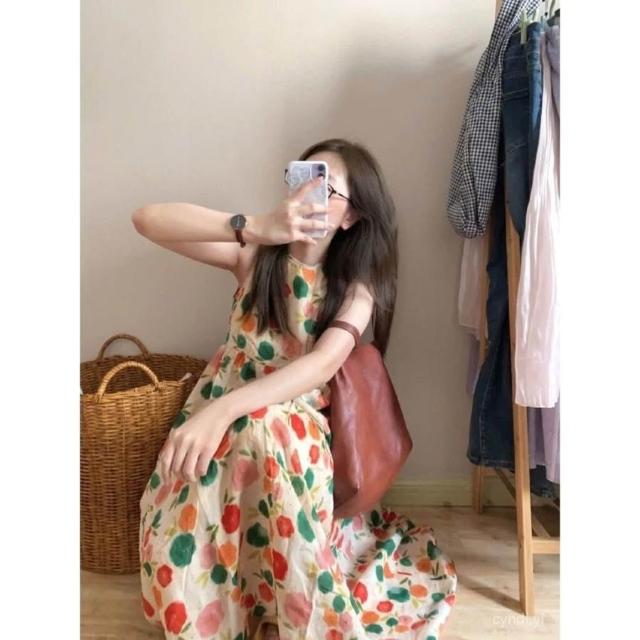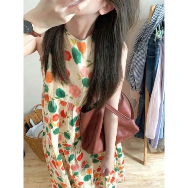 棉麻 清倉撿漏~夏季輕薄棉麻碎花無袖背心連衣裙女顯瘦法式茶歇長裙子 氣質 韓版0608 S1IE