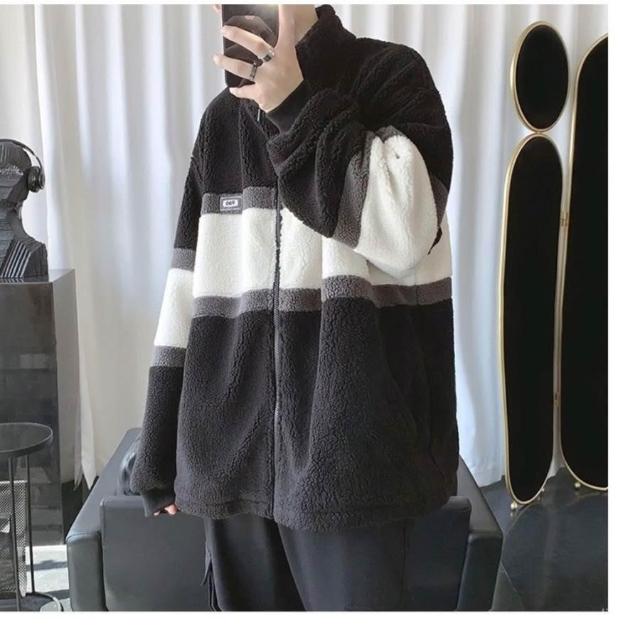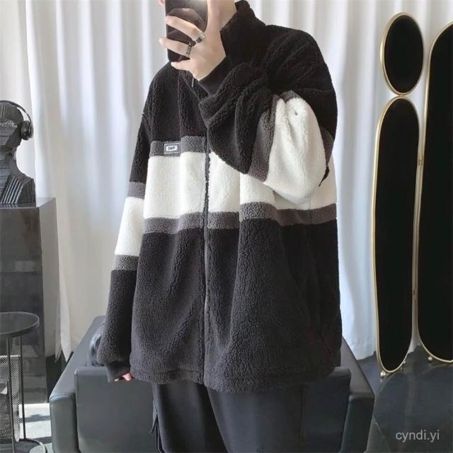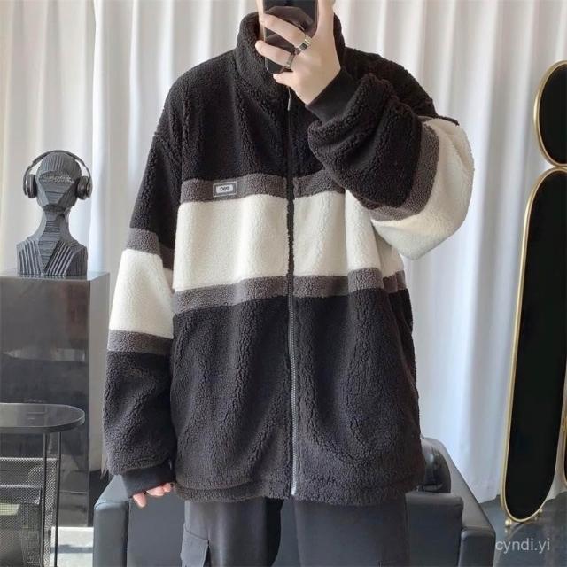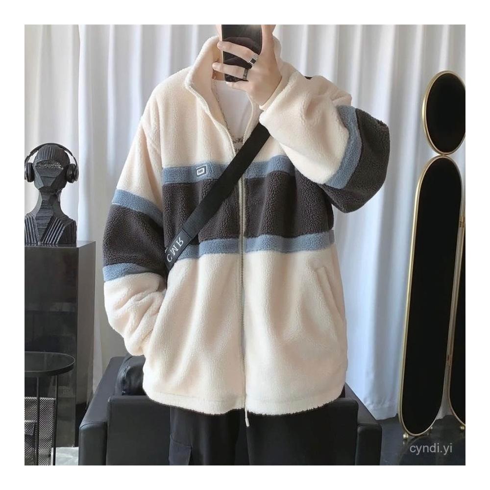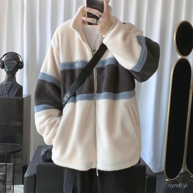 冬季羊羔毛外套羊羔絨毛外套男秋冬季棉衣服男士學生韓版潮流長袖夾克衫加絨加厚 保暖 加絨1023 SKXX