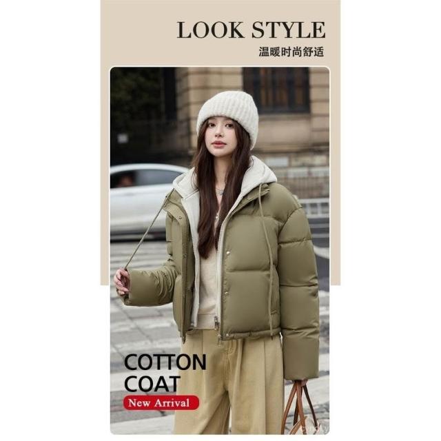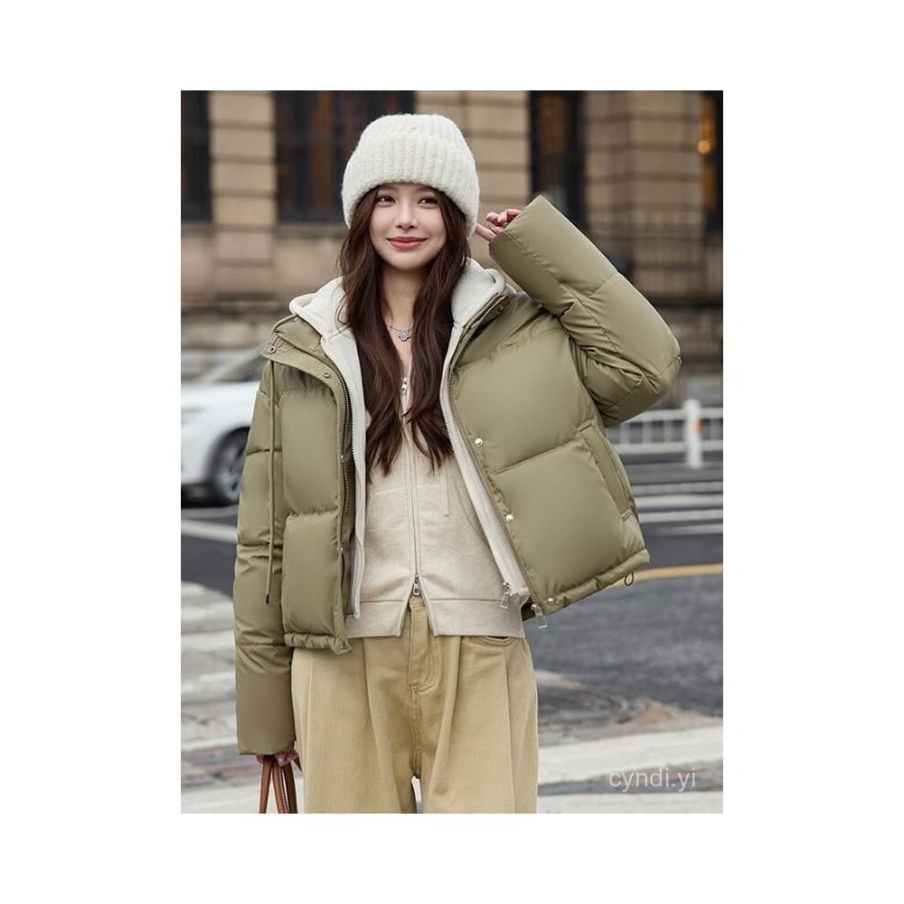 韓版棉服外套女 25冬季新款羽絨棉服女短版加厚寬鬆假兩件棉衣時尚休閒棉襖外套 保暖 麵包服1012