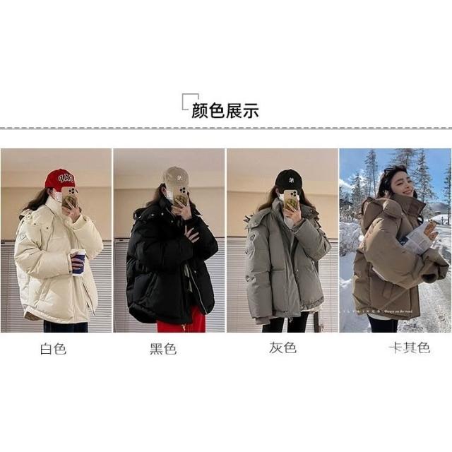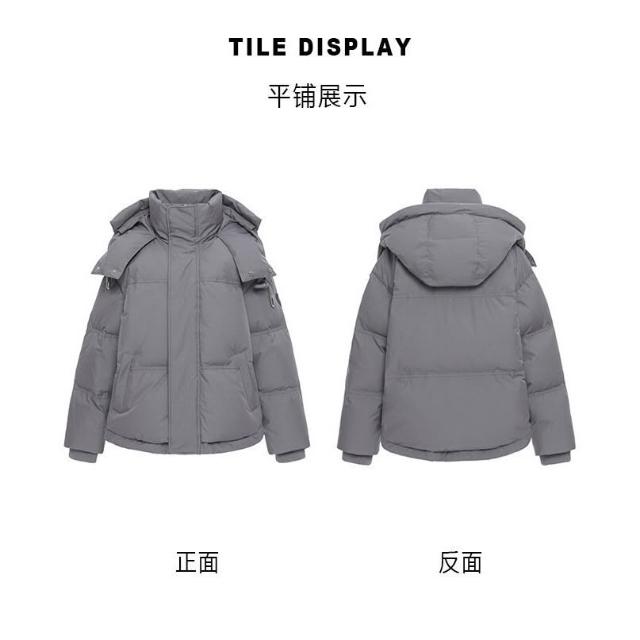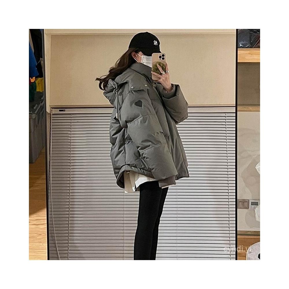 灰色愛心短版羽絨棉服24年新款男女情侶加厚小衆設計感麵包冬外套 韓國麵包服外套 保暖外套女 羽絨棉外套1130 EWOZ