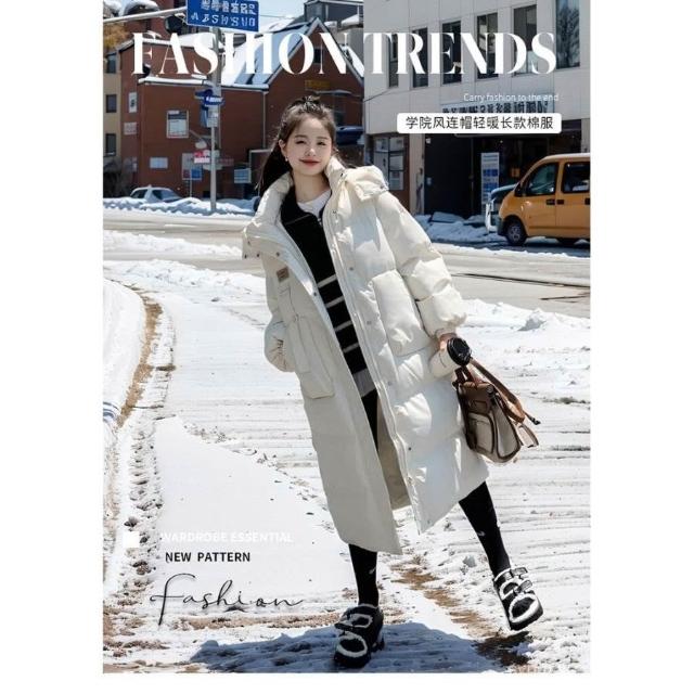 冬季中長版棉服女 羽絨棉服女中長版過膝25冬季新款韓版時尚棉襖女加厚棉衣潮 冬季外套 保暖防寒 1009