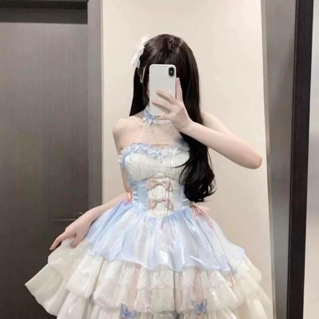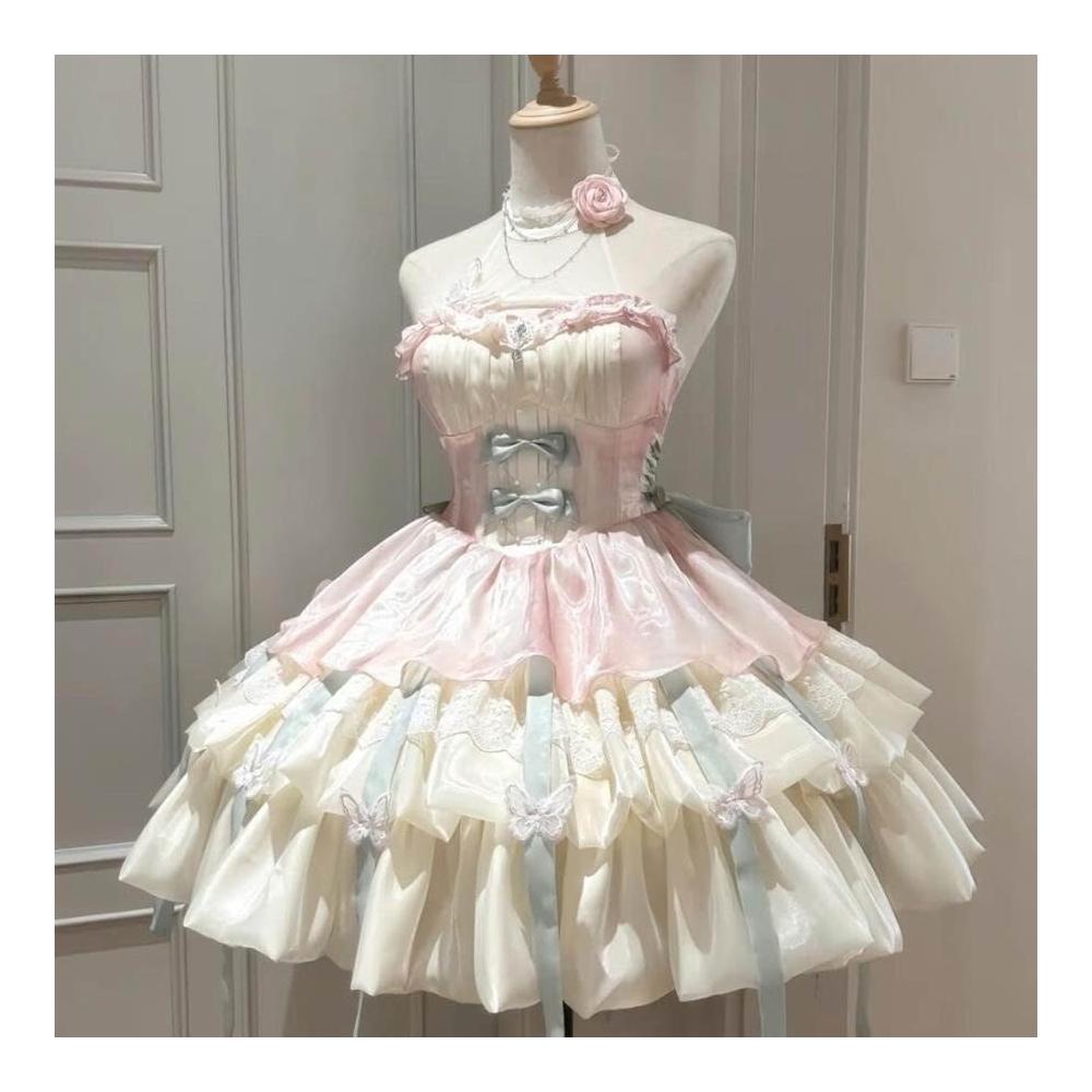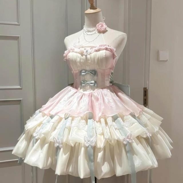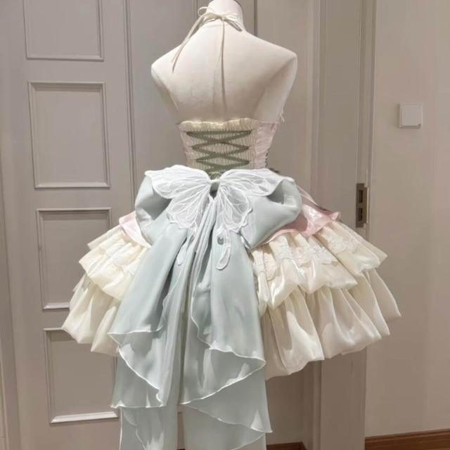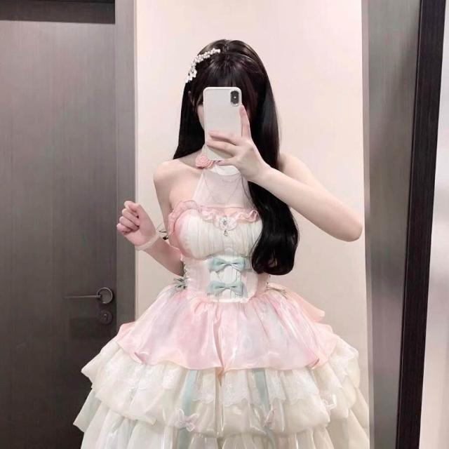 二次元 cos服 桔梗house愛神之約原創lolita公主風特純欲風掛脖吊帶短裙蓬蓬裙cosplay 角色扮演 c服