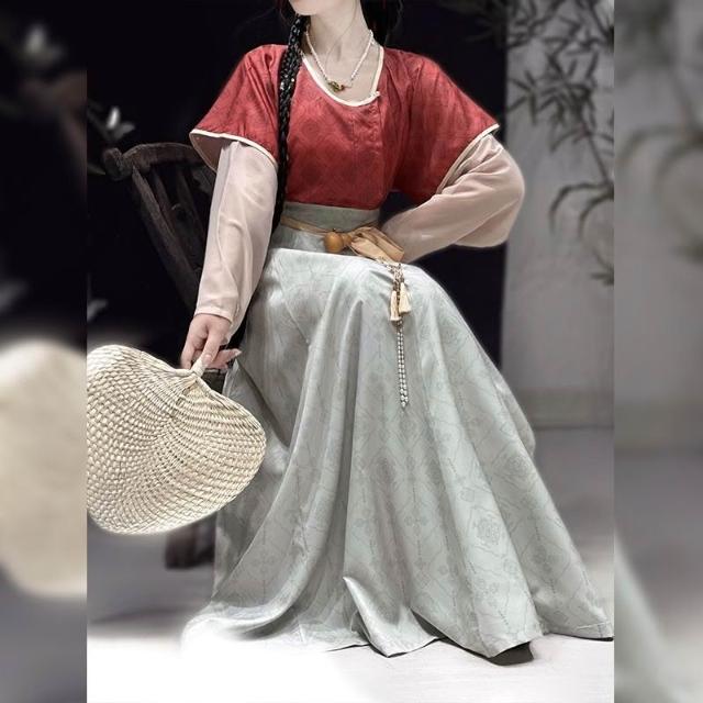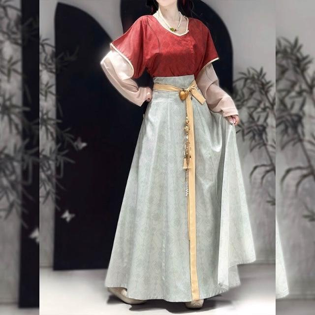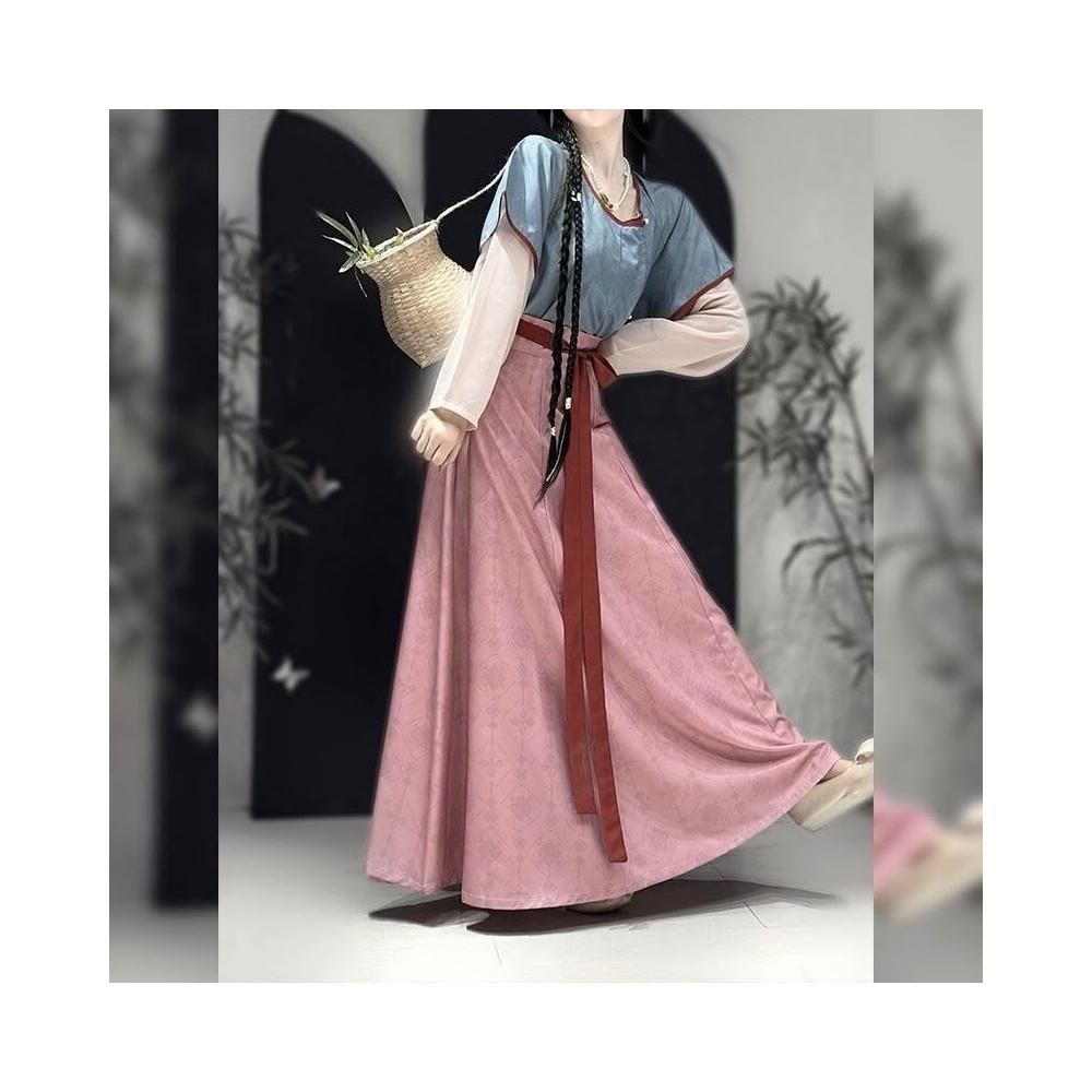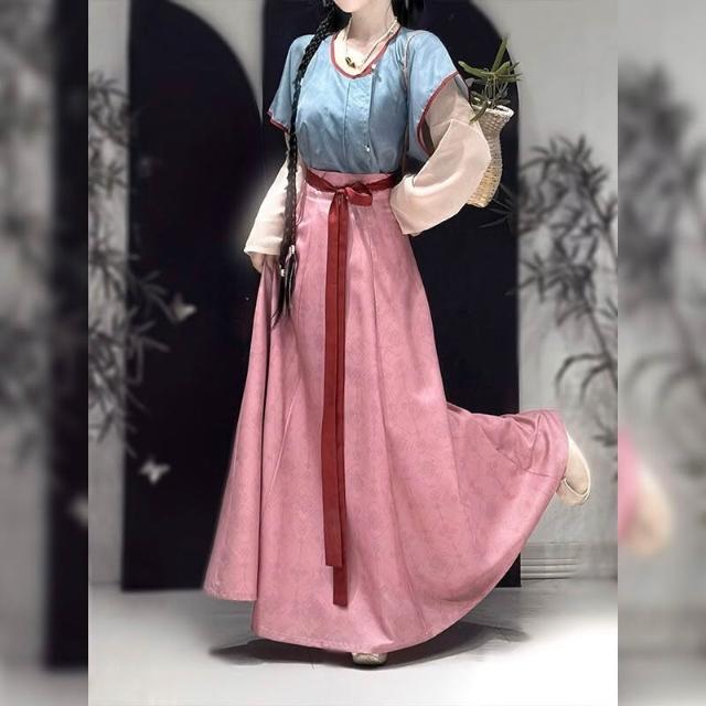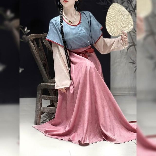 中式漢服 改良式古裝 漢服女唐制漢服唐褙齊腰春夏圓領衫八破裙套裝 漢服套裝 漢元素 演出服 唐服 古裝漢服 女裝