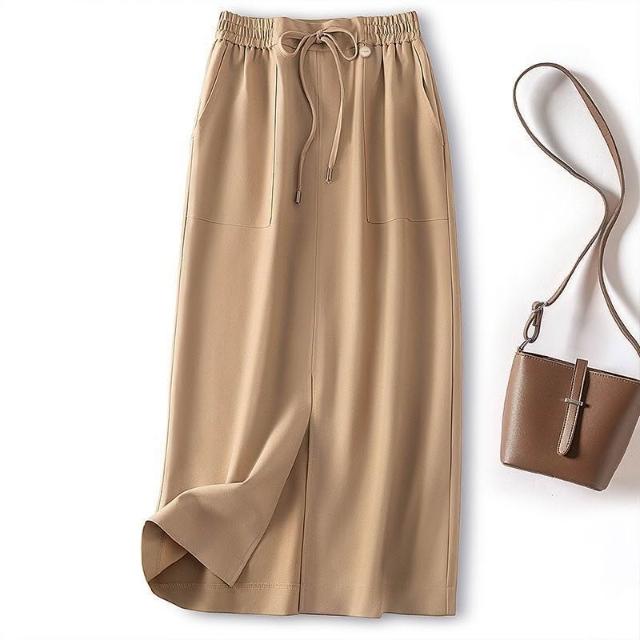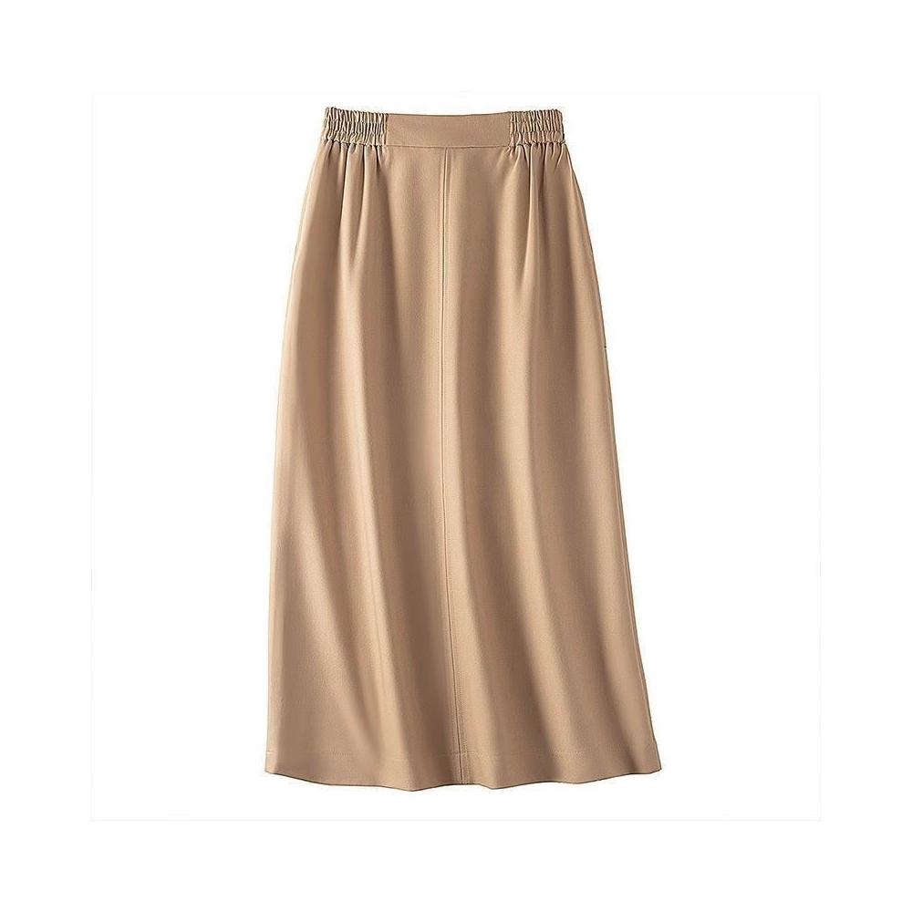 裙裝 通勤 OL風 淑女 秋裝 新女士時尚純色開叉顯瘦直筒裙鬆緊高腰半身裙 sam