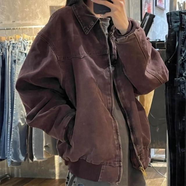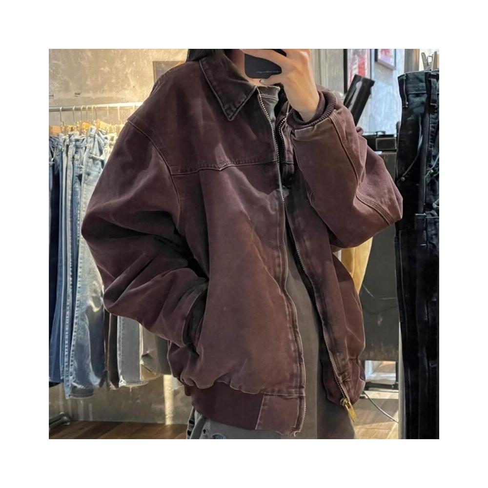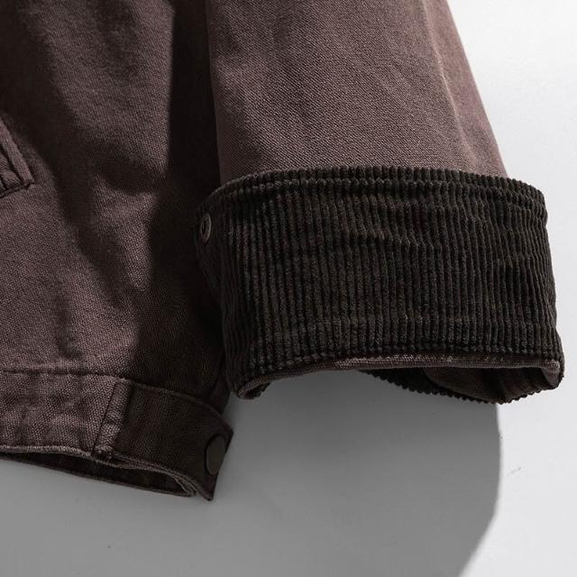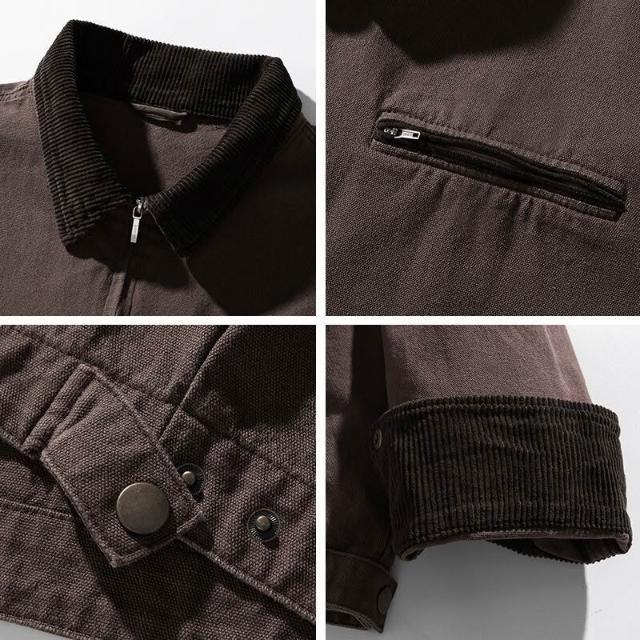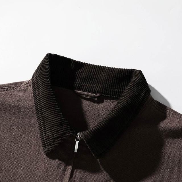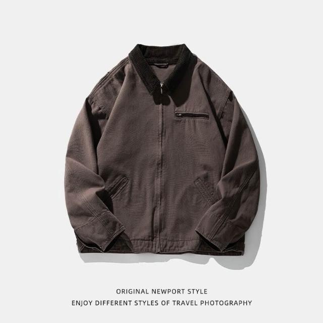 外套 夾克 咖棕色 墊肩外套男潮高級感美式復古哈靈頓底特律工裝夾克 外套男 男裝
