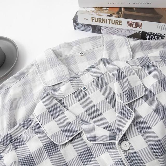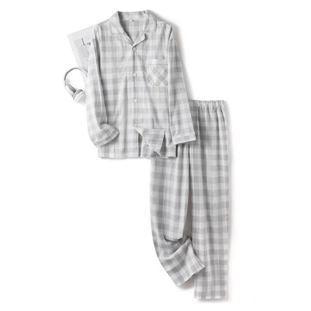 居家好物 睡衣 男士睡衣 居家服 男裝 春夏純棉 無印 大格男士長袖長褲良品睡衣套裝 家居服外貿 跨境出口 長袖 sam