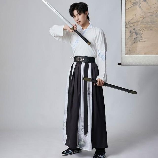 中式漢服 改良式古裝 改良漢服 原創魏晉刺繡黑色武俠交領霸氣漢服男黑色套裝成人中國風 表演服 漢元素 男裝 男漢服